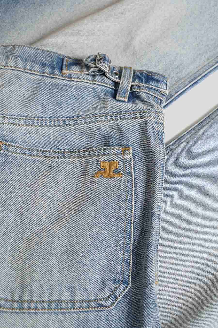These baggy denim pants have a straight and wide cut, you will find patch pockets at the front, as well as a multiflex metal button closure with the brand name engraved, two rear pockets, one with the logo AC embroidered, and at the waist there are two small straps allowing you to adjust the pants as you wish.