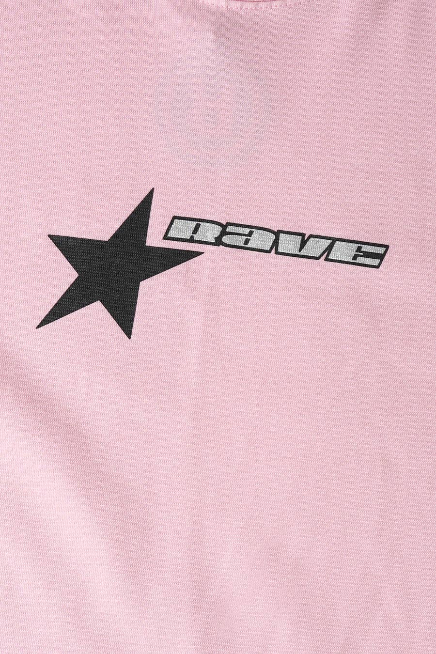 The AMA t-shirt from RAVE SKATEBOARDS is a unisex product made entirely of cotton. This t-shirt has a boxy cut in a pink color and features the brand's shiny black and gray star logo with futuristic typography. Also find a discreet patch at the back of the neck with the brand name.