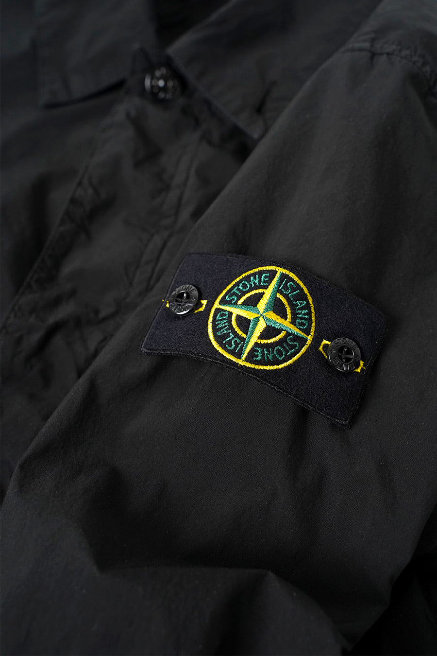 The jacket features a classic cut, a two-way zipper concealed under a double button placket, concealed elasticated cuffs, a button-down collar, two slanted snap pockets, metal side vents and, last but not least, the Stone Island badge on the left sleeve.