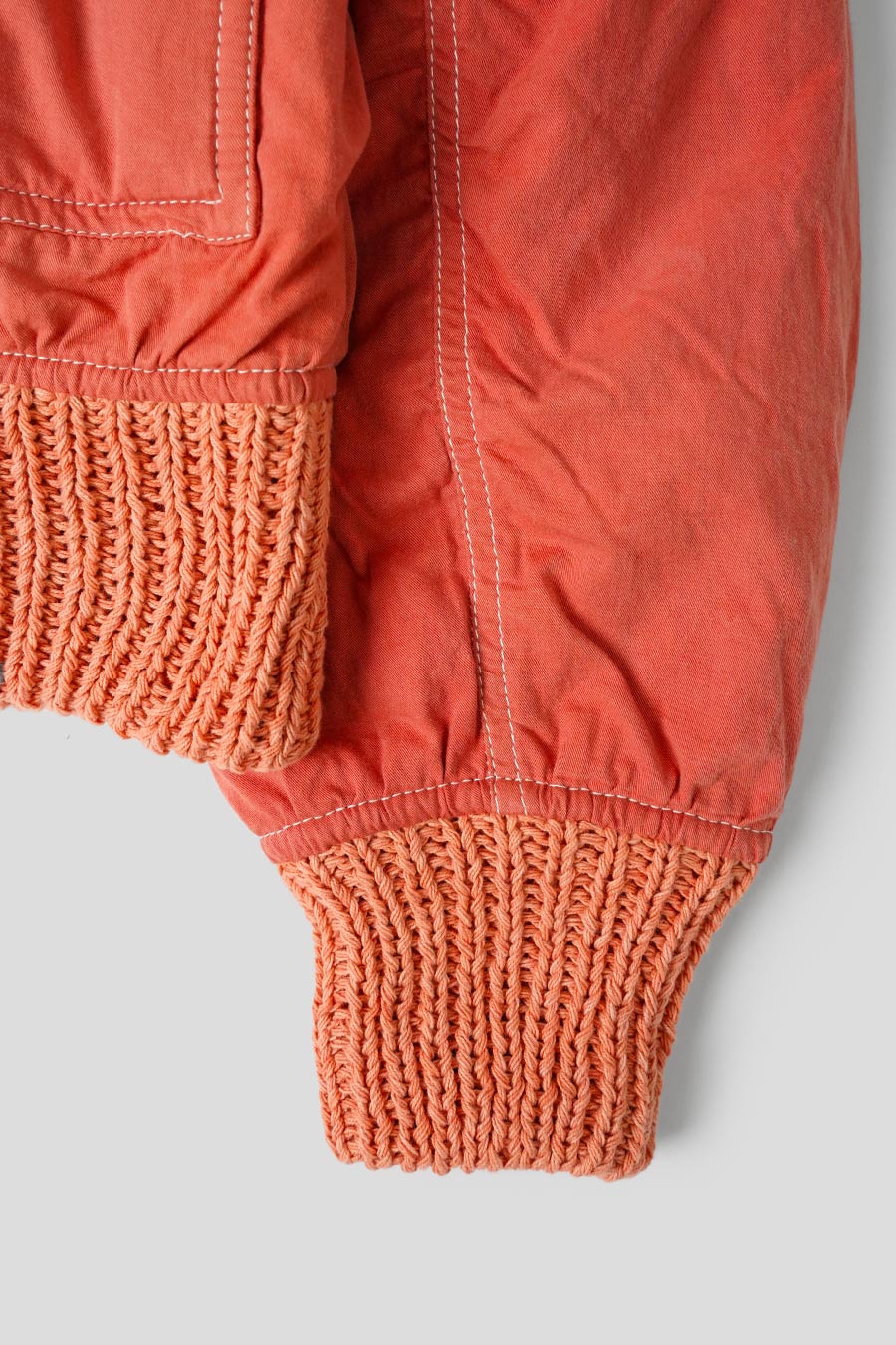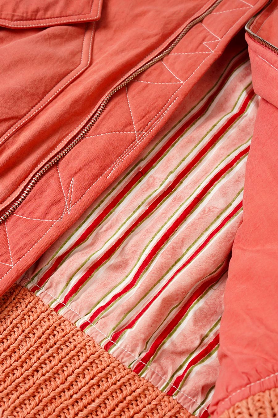 The GRAIN bomber from STORY MFG. is a unisex product made from organic cotton. This bomber features a relaxed fit inspired by vintage workwear and bomber jackets, while being reversible: one side naturally hand-dyed and the other hand-printed. It features a V-neck, knitted cuffs and hems, a hand-knitted leaf on the right sleeve and a zipped pocket on the left sleeve. It also has two flap pockets on the sides. Find the GRAIN bomber in a light pink color, called “ANCIENT PINK WONKY WEAR” by the brand.