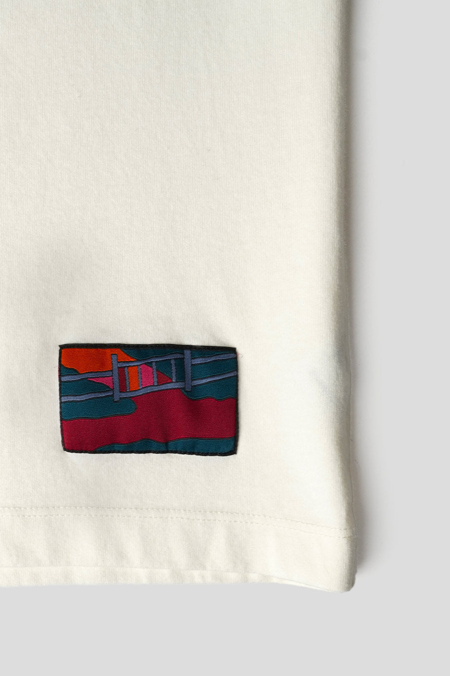 Ce t-shirt présente une coupe boxy, une sérigraphie sur l'avant avec le nom de la marque en couleur et patche brodé en bas à gauche du produit.
