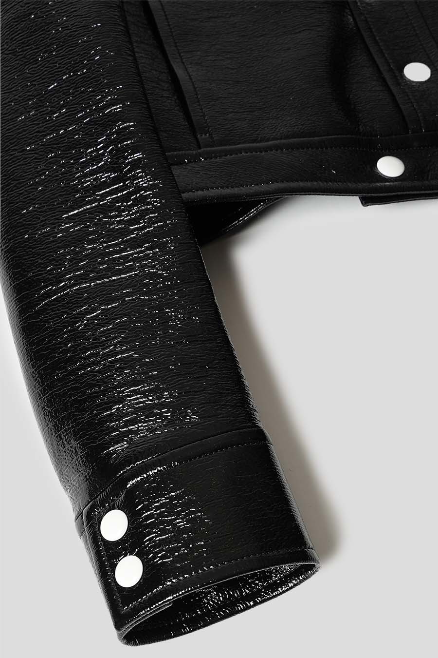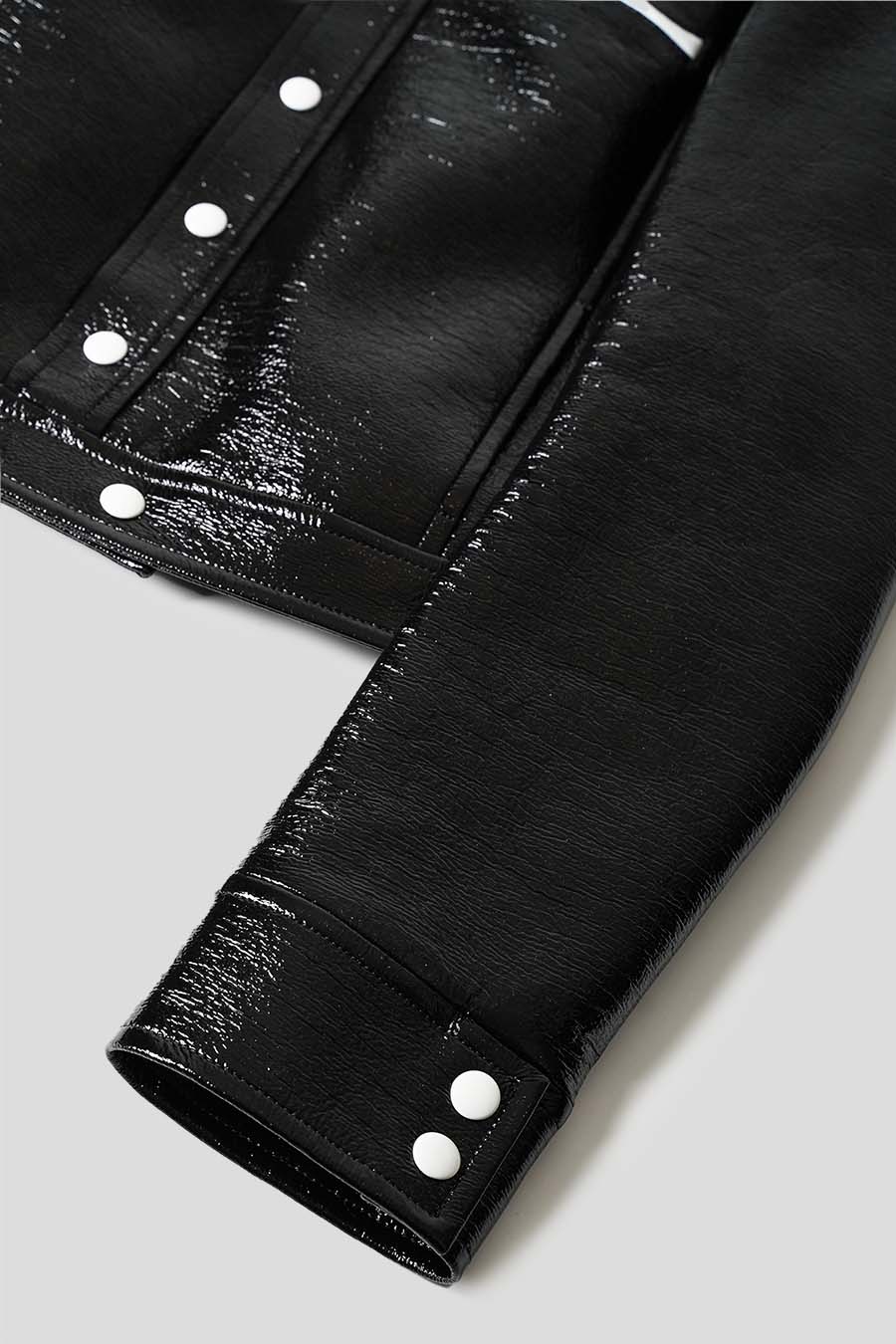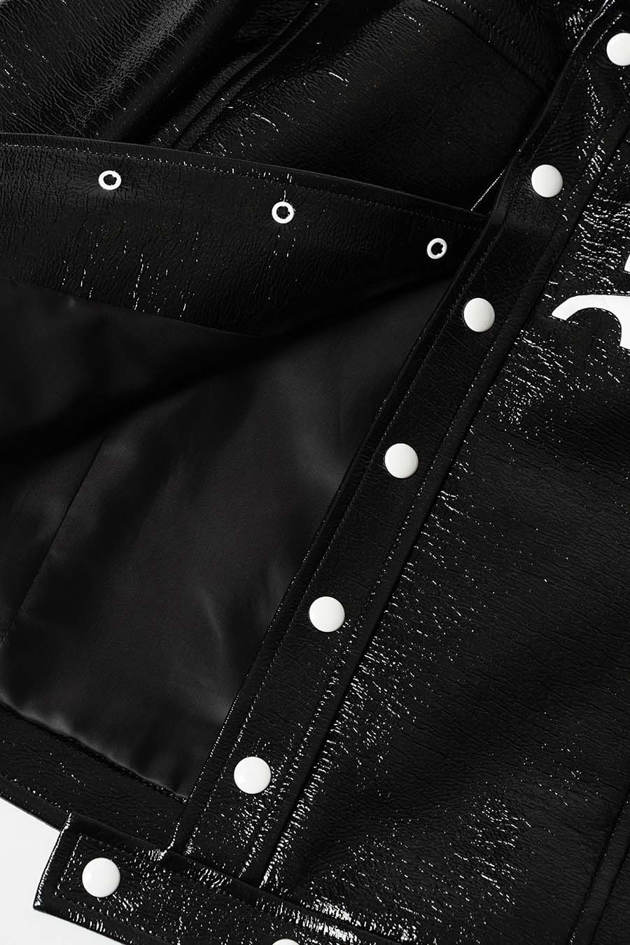 Cette veste iconique en vinyle inspiré du modèle emblématique de 1971 de la marque présente une coupe droite et a été imaginée pour être portée ouverte, vous retrouverez un col montant, deux poches sur les côtés ainsi qu'une fermeture à pression visible laquée de couleur blanche qui se trouve au centre de la veste et aux poignets et pour finir le logo AC blanc incrusté sur la poitrine.
