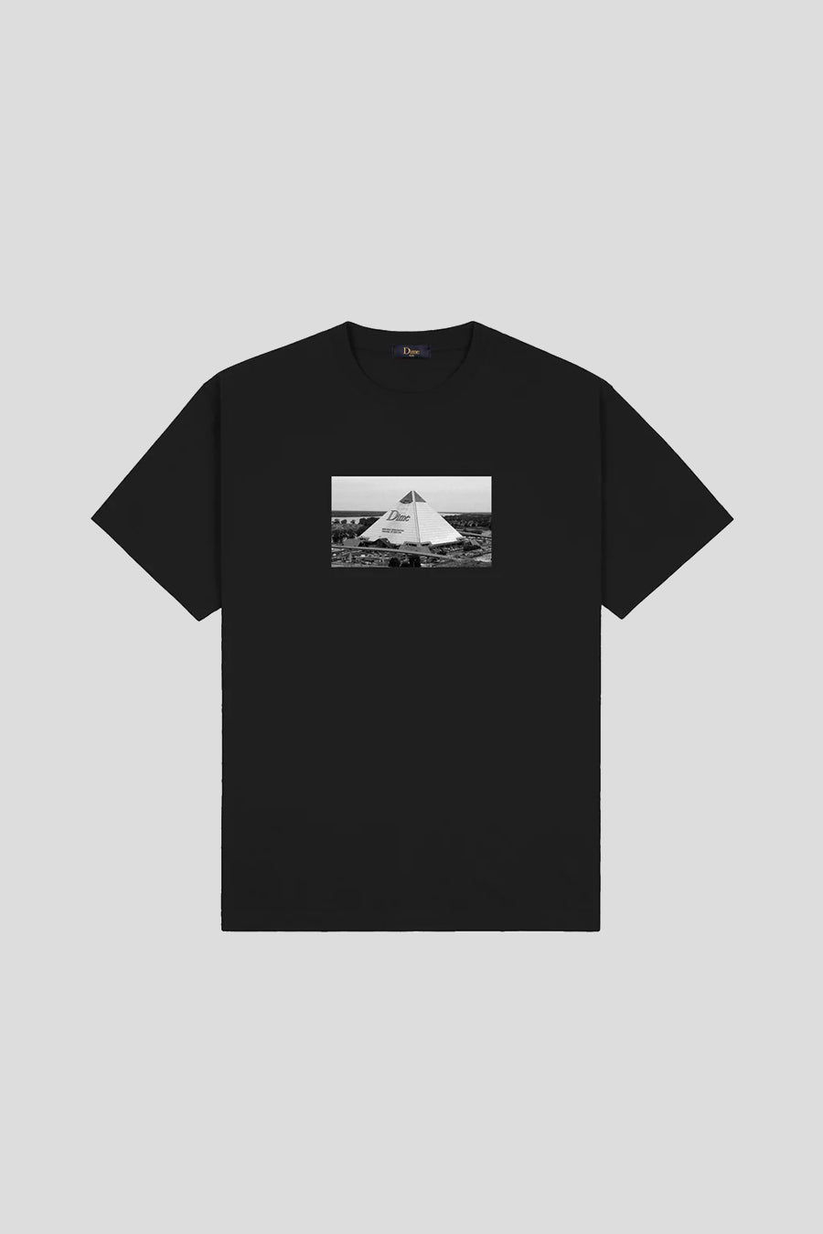 Ce t-shirt présente une coupe ample et une sérigraphie sur l'avant au niveau poitrine. Le design représente une pyramide qui aurait dû être le deuxième emplacement physique de la marque.