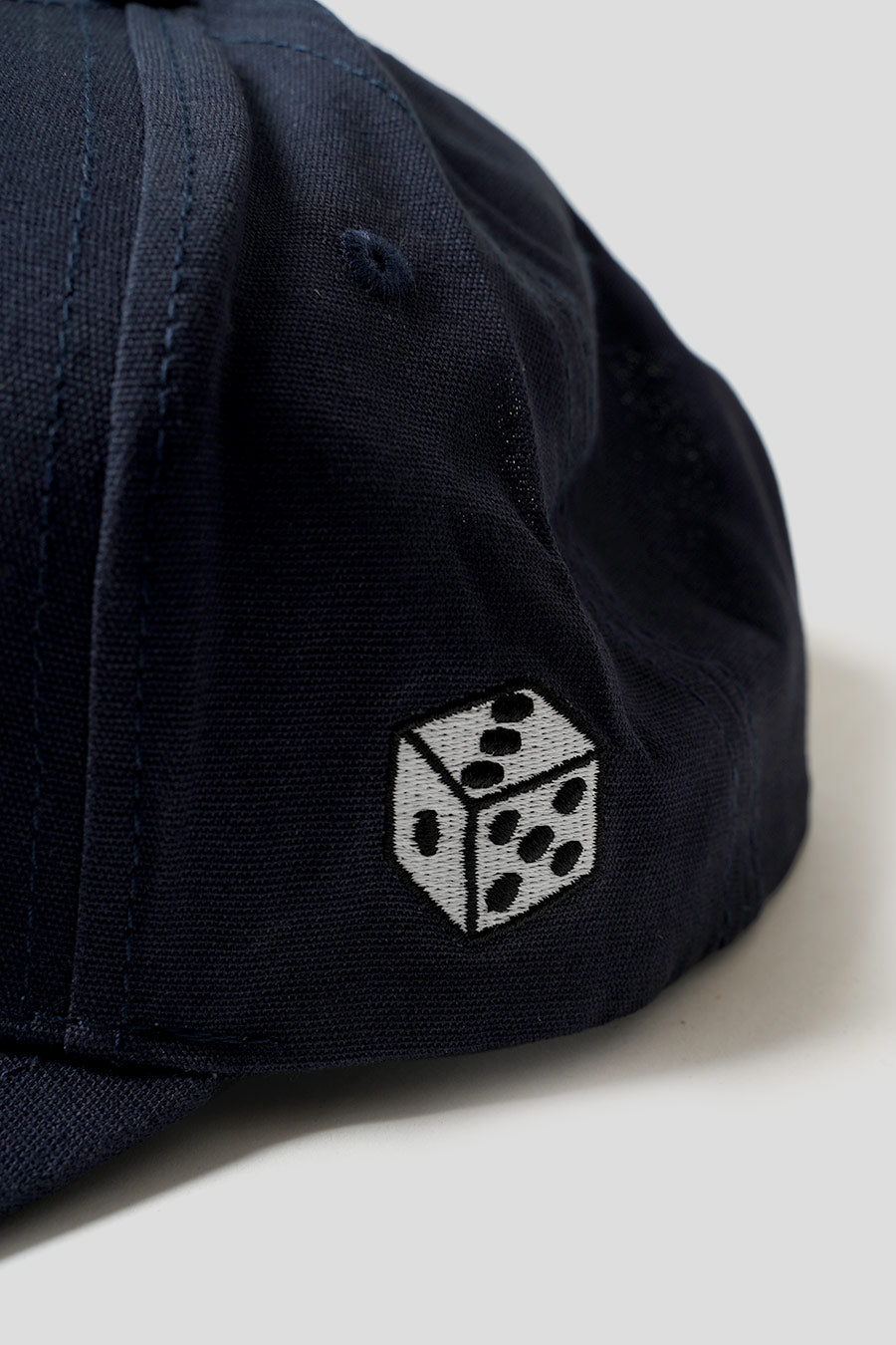 La casquette D snake bleu nuit de chez Dime est un produit unisex confectionné en coton. Elle est composée de 6 panneaux et présente deux broderies : une sur le devant représentant un D majuscule et des serpents. La deuxième broderie représente un dé et se situe sur la gauche de la casquette. Elle dispose également d'une sangle ajustable sur l'arrière.