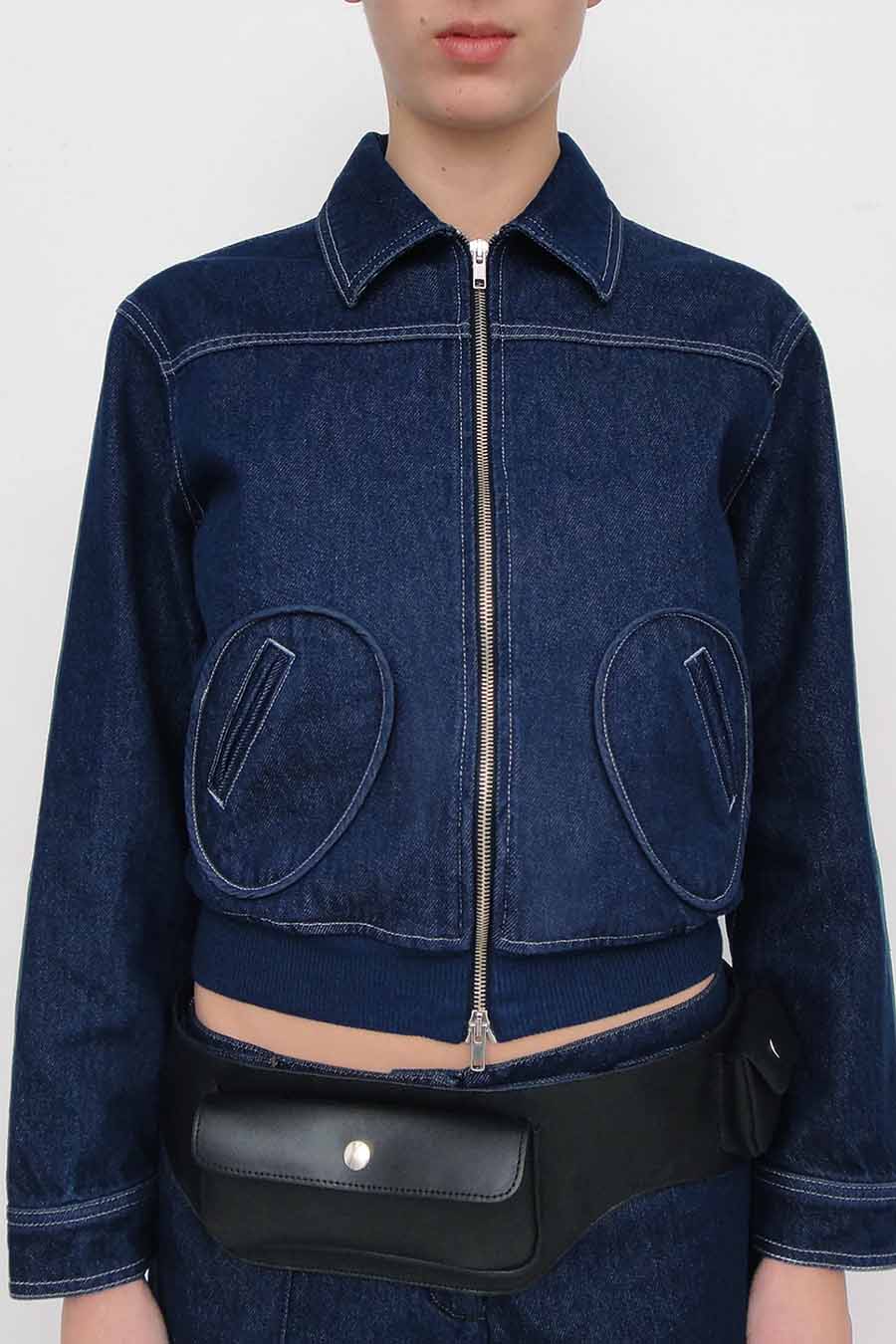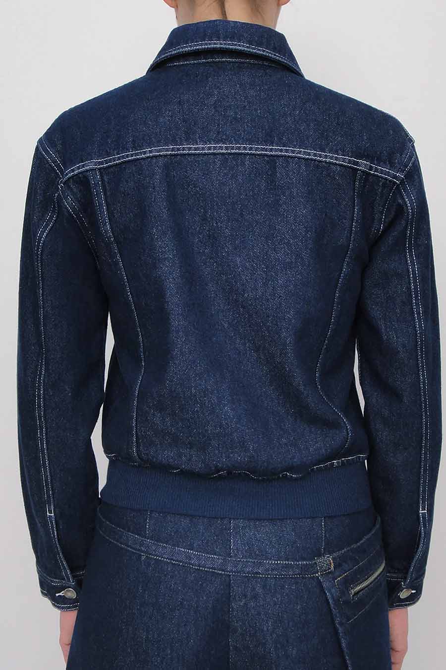 Cette veste en denim non doublé présente un col italien, une fermeture à glissière bidirectionnelle, des poches passepoilées, deux poches plaquées à l'intérieur, vous retrouverez un ourlet en tricot côtelé, des poignets cylindriques avec bouton et pour finir des coutures contrastées blanches.
