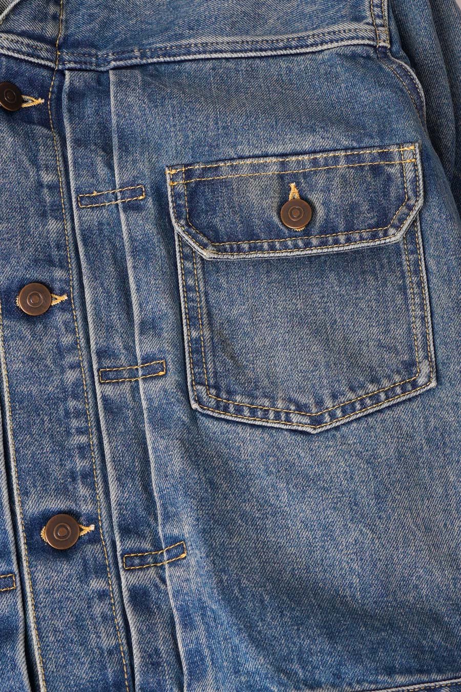 La veste en denim de chez MAISON MARGIELA est un produit pour hommes fabriqué en coton. Inspirée du workwear, cette veste en denim japonais revisite un classique avec des poches passepoilées en biais et une poche poitrine zippée à tirette anneau. Son col en velours côtelé contrastant apporte une touche raffinée, tandis que les quatre points signature à l’arrière rappellent l’identité discrète de Maison Margiela. Une pièce intemporelle, entre artisanat et modernité. Retrouvez la veste en denim dans un coloris bleu.