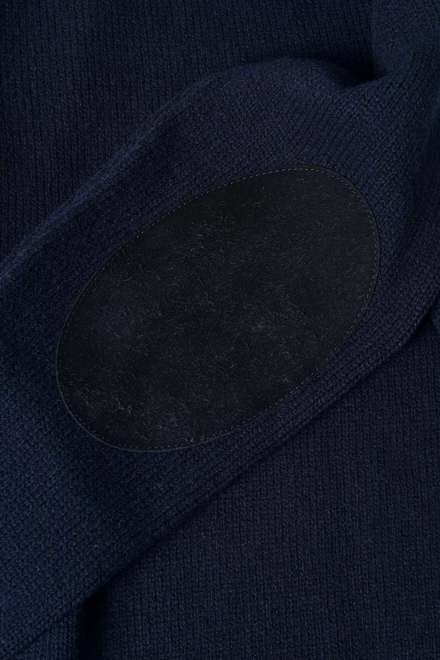Ce produit présente un col V bas, des manches longues sur lesquelles se trouvent des empiècements sur les coudes en daim, des bordures côtelées, vous retrouverez une fermeture par bouton en corne avec broderie M rouge, et des détails à effet décortiqué.