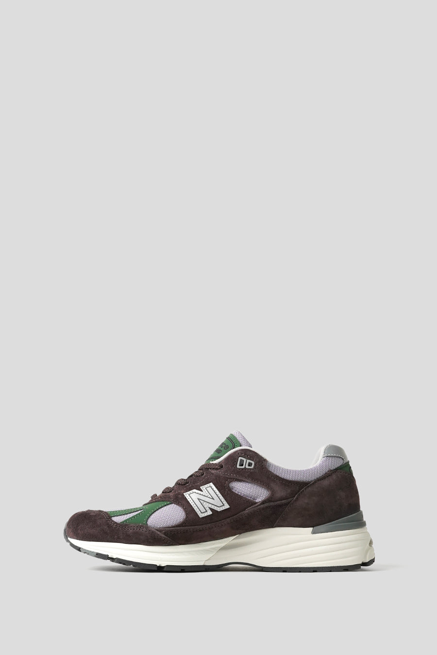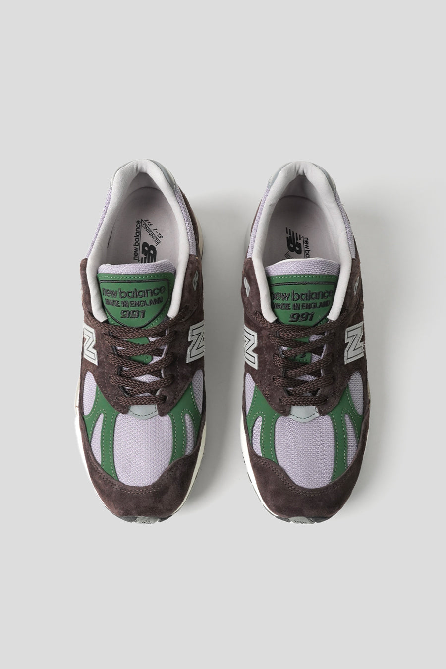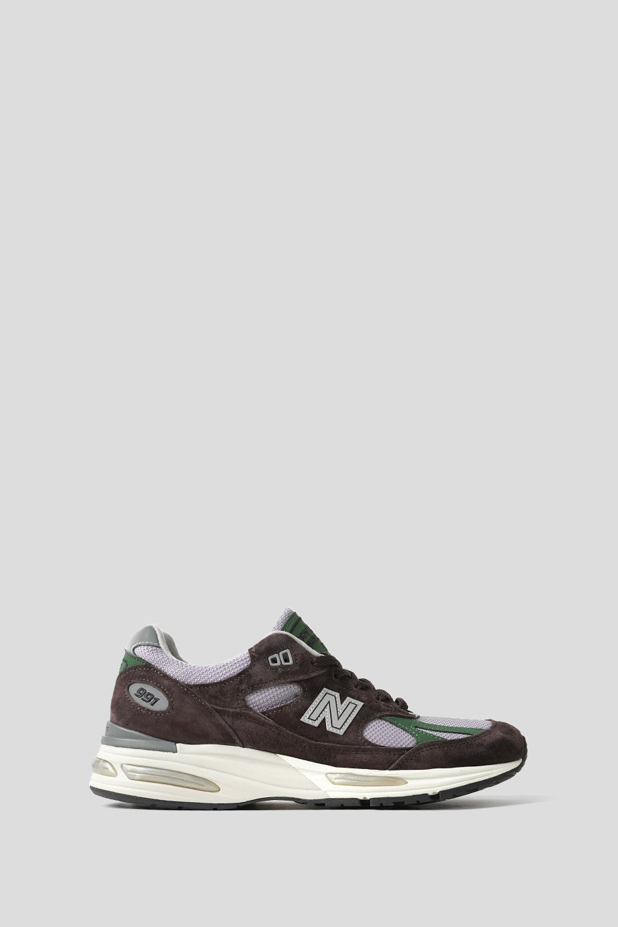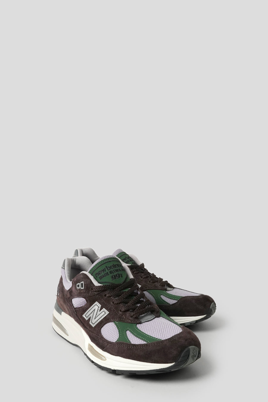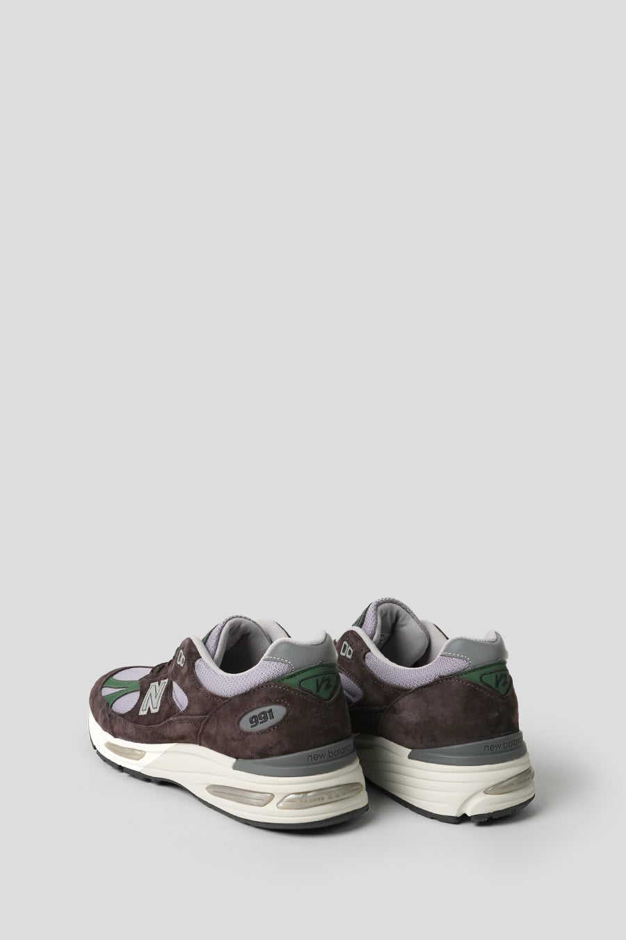 Les sneakers 991V2 Made In UK de chez New Balance sont un produit unisexe confectionné en tissu, en cuir de porc, et en caoutchouc.