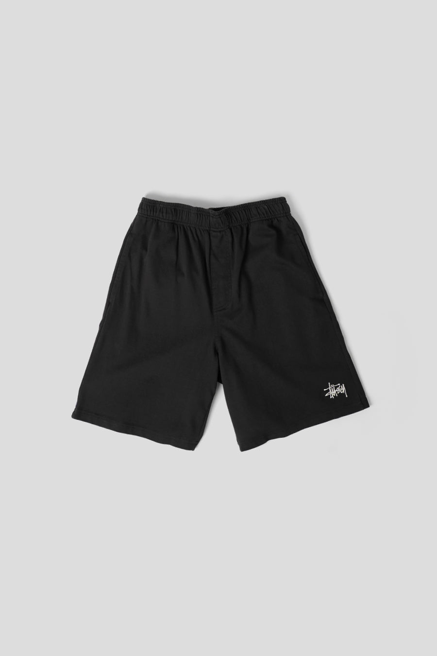 Ce short présente une coupe décontractée, une taille élastique avec cordon de serrage intérieur, des poches latérales dans les coutures et une poche passepoilée à l’arrière. Le logo basique "Stüssy" est brodé sur la jambe gauche.
